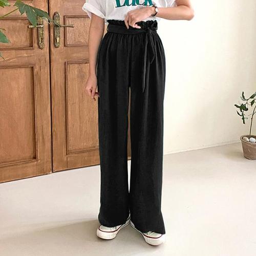 [모노무드]LMO 트랜디 디테일 와이드핏클래식 레이디스 끈 고무줄 슬랙스
