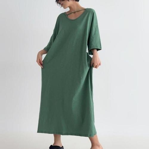[다잇템][다잇템] 여자 사선끈 반소매 홈웨너 U넥 큰사이즈 롱원피스_21258108_588872