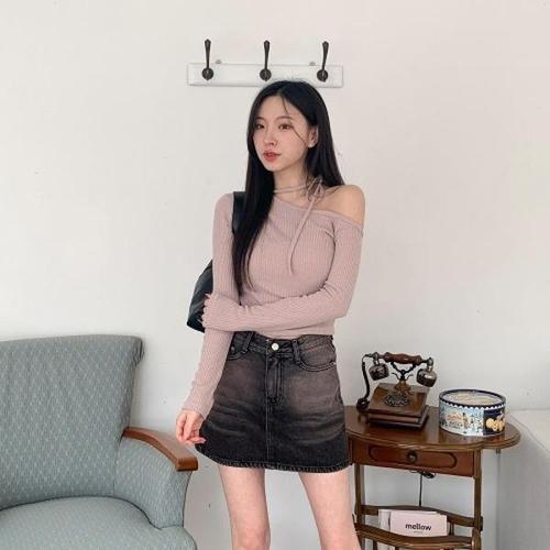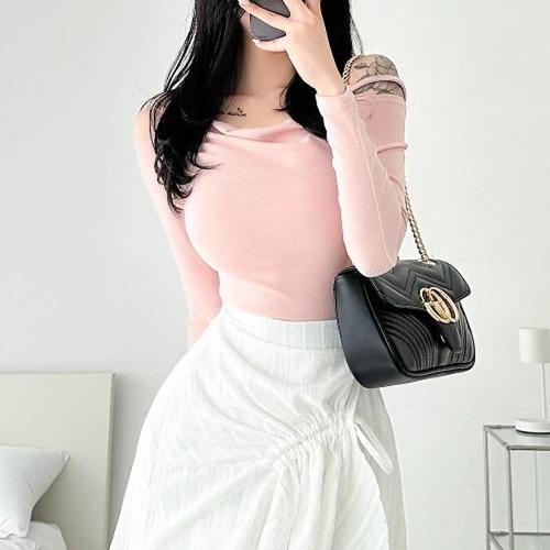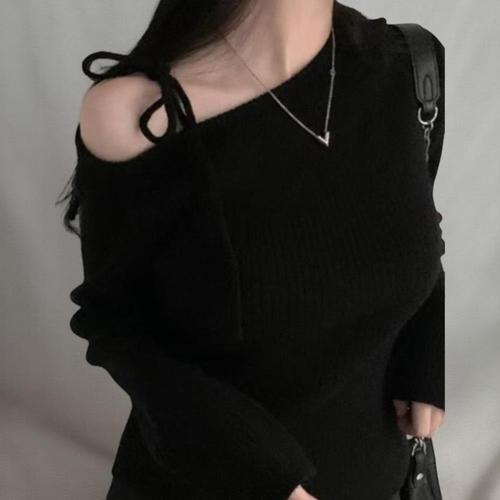 |CCT9656|여성 클래식 오프숄더 니트 긴팔 골지 어깨끈 스웨터