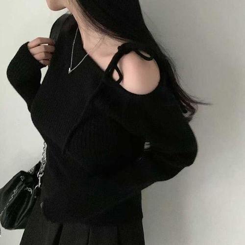 [셀러허브_여성트랜드패션]Rly 클럽 룩 패션 날씬해보이는 오프숄더 리본끈 니트