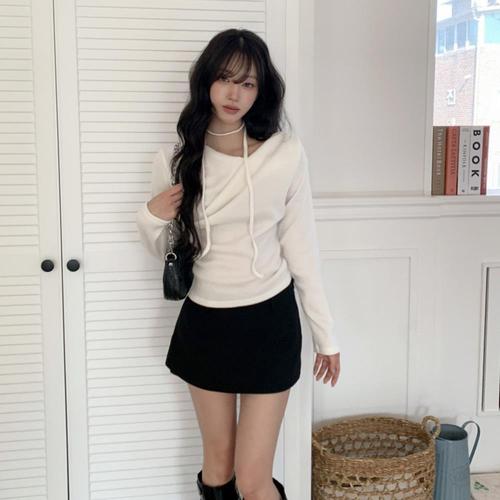 [옷자락] 여자 오프숄더 끈 나시 4컬러 봄 여름 긴팔 티셔츠