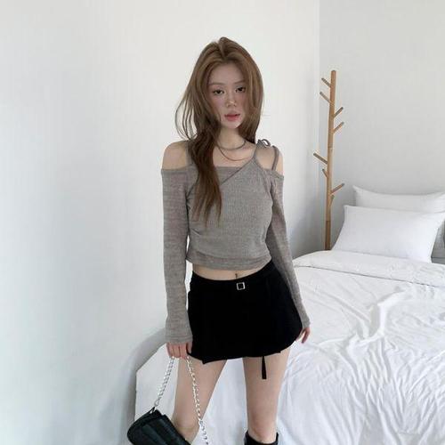 [옷자락]여자 오프숄더 끈 나시 4컬러 봄 여름 긴팔 티셔츠