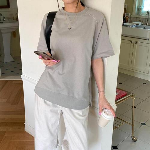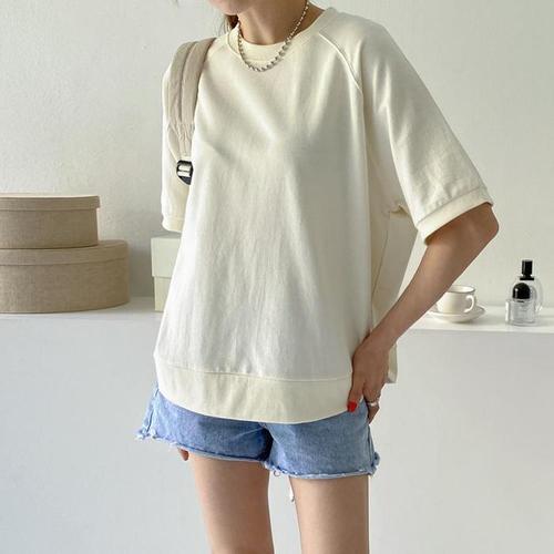 [다잇템]여자 라글란 U넥 박시핏 민무늬 SS 티셔츠 (10279689A)