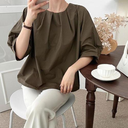 [다잇템]여자 라글란 아코디언 반소매 블라우스 (10756440A)