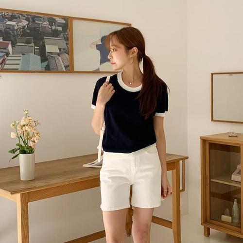 [다잇템]여자 U넥 반소매 콘트라스트 라글란 니트 (10381005A)