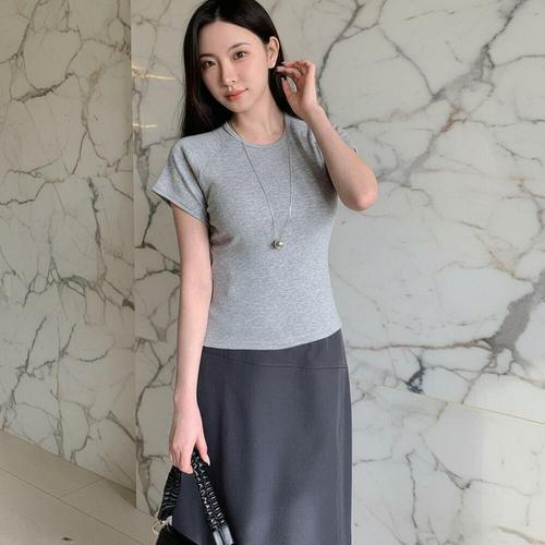 [미라클세븐]여성 슬림핏 세미 크롭 나그랑 반팔 티셔츠
