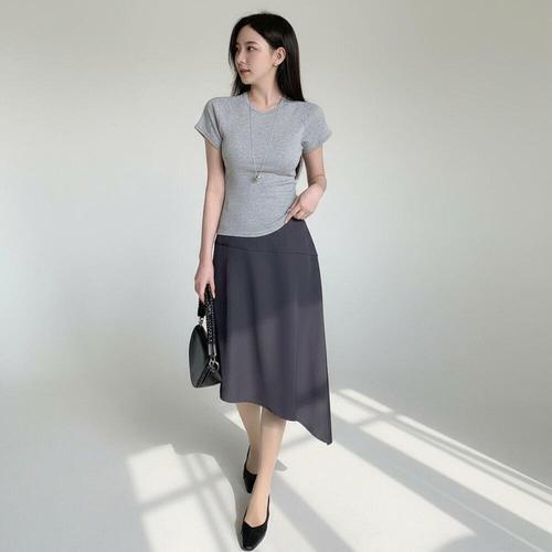 [미라클세븐]여성 슬림핏 세미크롭 나그랑 반팔 티셔츠