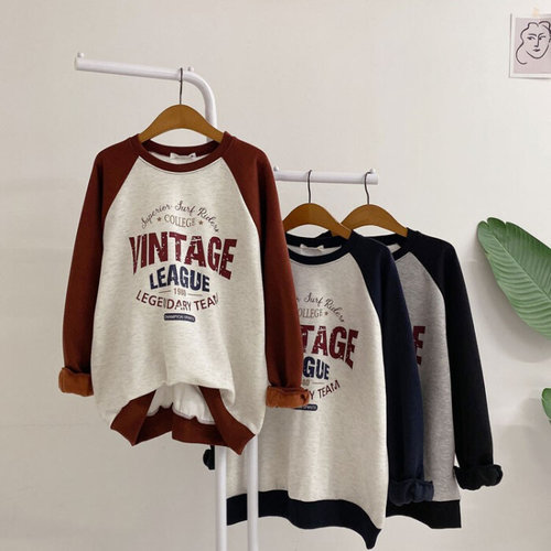 허니제이 / 크리슨 기모 배색 나그랑 레터링 맨투맨(3color)