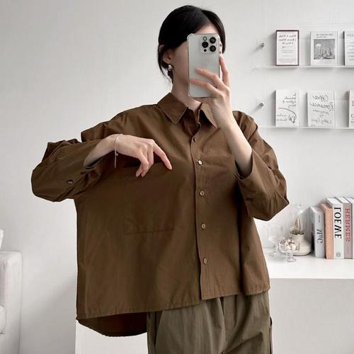 여성 하프기장 기모노핏 나일론 주머니 셔츠_3
