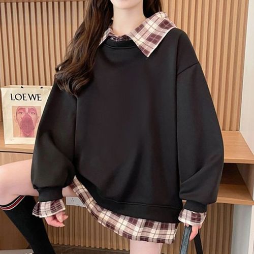 나바바 / NT3048 투인원 체크 카라 긴팔 맨투맨