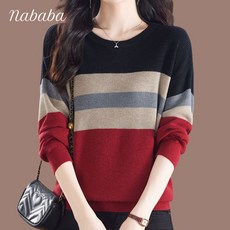나바바 NK2498 여성 캐주얼 배색 라운드넥 긴팔 니트티