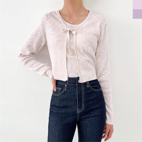[옷자락]여자 시스루 리본 플라워 나시 여리핏 볼레로 니트 세트