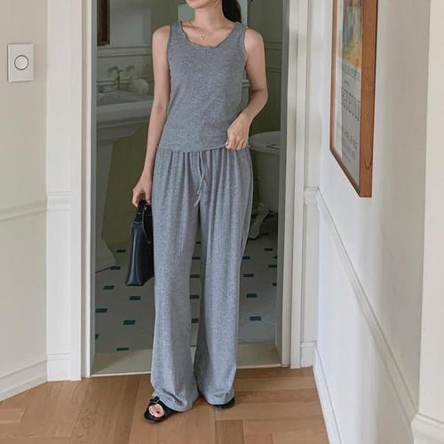 [다잇템]여자 골지 U넥 슬리브리스 롱바지 세트 (10437111A)