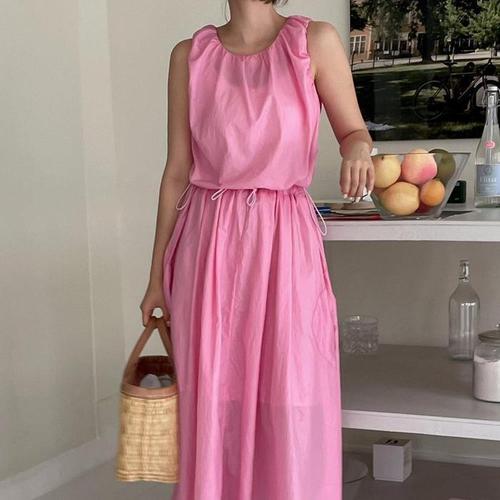 [다잇템]여자 반소매티 드레스 슬리브리스 민무늬 세트 (10287924A)