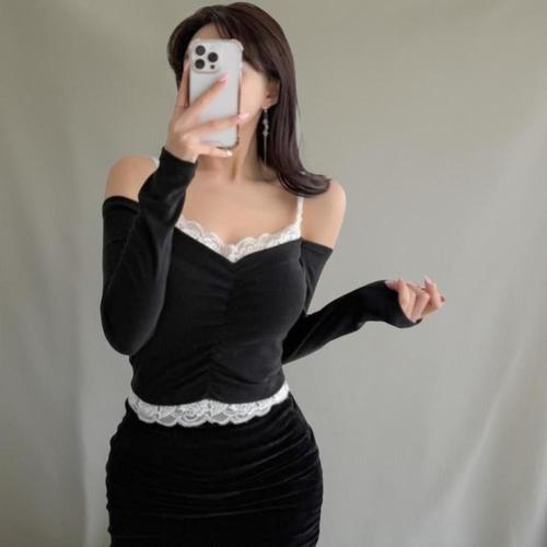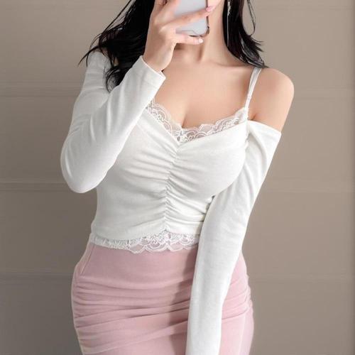 [셀러허브_여성트랜드패션]ONM 레이스나시 여성 티셔츠 긴팔 외출 스타일 니트