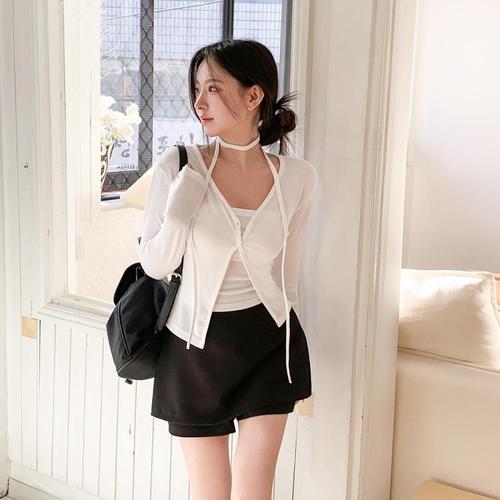 [옷자락]여자 봄 홀터넥 골지나시 브이 버튼 슬림핏가디건 세트