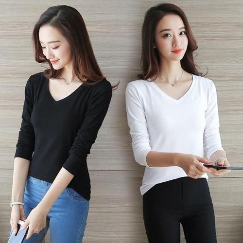 [에이치플러스몰]DGI18211 여자브이긴팔면티숙99 라운드 브이넥 티숙 V넥 면티 XL 여성 여성 긴팔 나시 ..