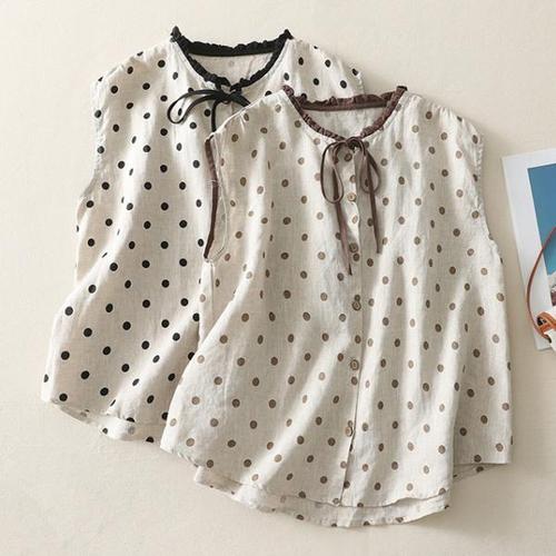 [넬리]티브 도트 민소매 블라우스_NC2BL154