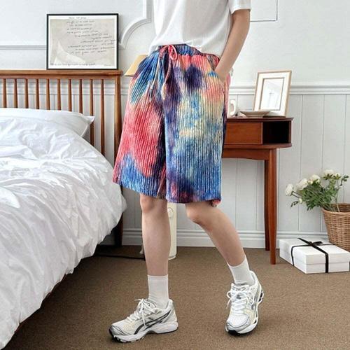 [셀러허브_여성트랜드패션]그라데이션 패션나염반바지 오로라 바지 남성반바지 반바지 나염 주름통