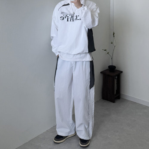 브이넥 나일론 맨투맨 배색팬츠 트레이닝 세트