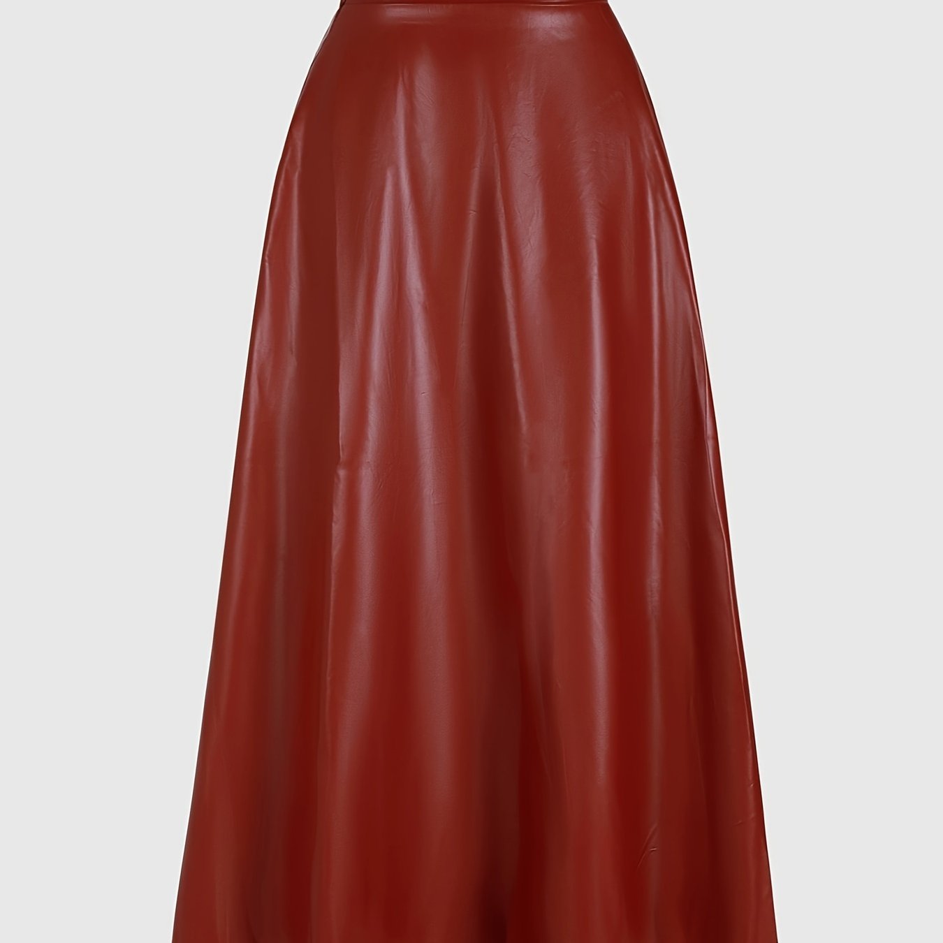 TEMU 플러스 사이즈, 우아한 A라인 스커트 러플 리프 헴 - 단색 봄/여름 드레스, 탄력 있는 허리, 세탁기 사용 가능, 캐주얼에서 세미 포멀 웨어, 웨딩 게스트 또는 오피스 아웃핏 - 논스트레치 우산 스커트 (드레스 & 스커트용)