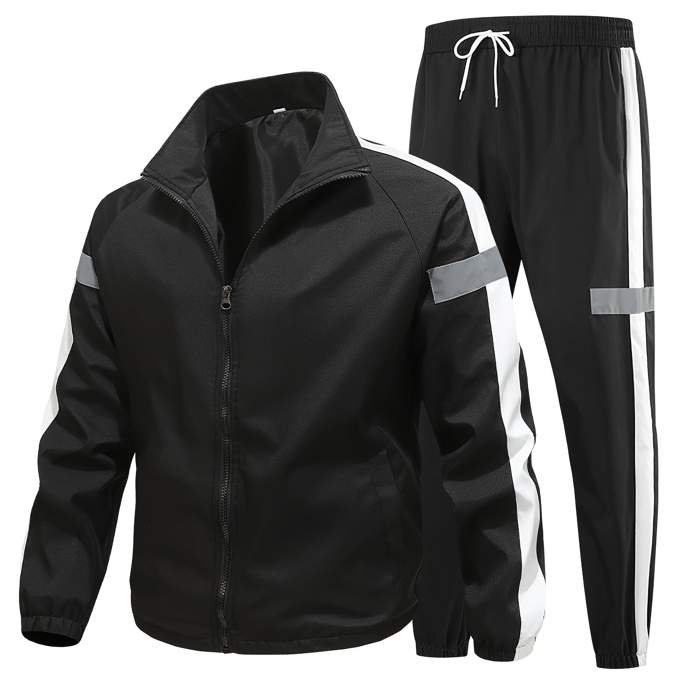 TEMU 패셔너블 캐주얼 운동복 세트 남성 봄/가을 신상 재킷 & 바지 투피스 세트 런닝 스포츠 수트 남성 스포츠 웨어 재킷 학생 봄/가을 스타일 원세트