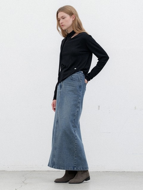[아틀리에 나인] 슬릿 포인트 데님 맥시 스커트(SK-5040)