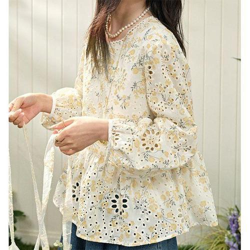 샵앤) 여성 꽃레이스 쉬폰 타원 펀칭 데일리 긴팔 블라우스 MSE-WBL-20375-아이보리