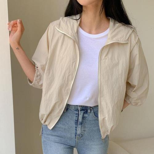 [다잇템]여자 드로우코드 나일론 윈드브레이커 후드집업 (10292004A)