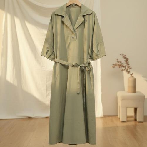 [옷자락]여성용 클래식 칠부 나일론 원피스 데일리 오피스룩