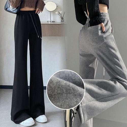 6xl까지 빅사이즈 기모 와이드 팬츠 스트링 밴딩 심플 환절기 여성 긴바지 겨울 방한 캐주얼 츄리닝복 일자바지