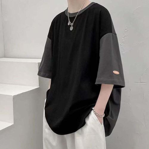 [셀럽하우스]남자 RDZA4911 학생 박스티 반팔티 캐주얼룩 코디 배색 소매