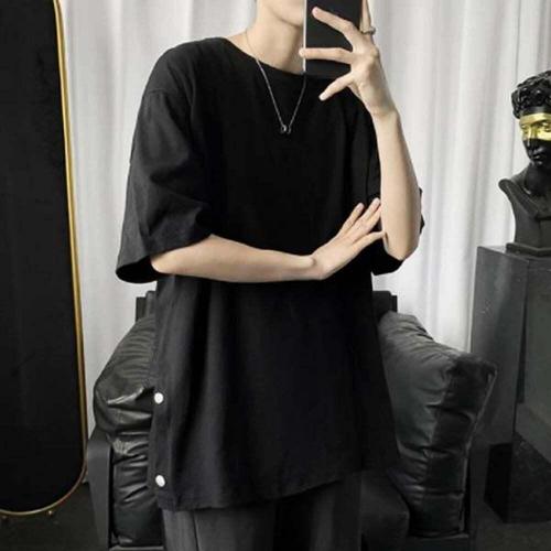 라운드넥 남성 오버핏 7부 소매 티셔츠 루즈핏 박스티