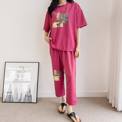 ★상하세트★캐주얼 포인트 디자인 프랑 상하의 세트 (반팔+7부바지) 코디추천 세트상품