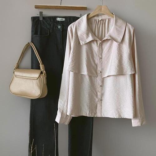 [신상오픈런]여성 사무실용 날개 디자인 핀턱 루즈핏 카라 블라우스