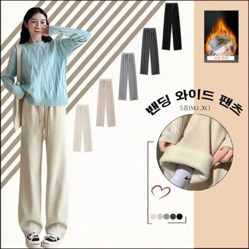 텐제로 겨울 남녀 베이직 두툼한 기모 와이드팬츠 밴딩바지 4컬러