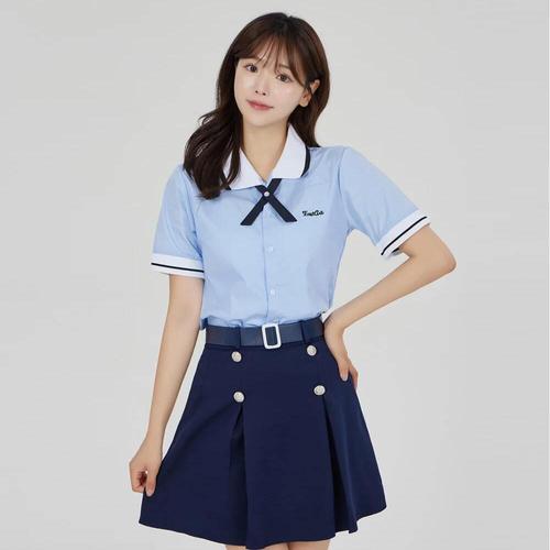 [교복몰]스카이블루 반팔셔츠 블라우스 4버튼 버클치마 세라복