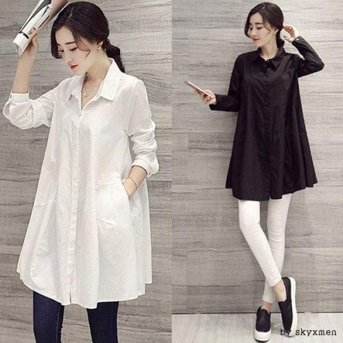 셔츠형원피스 화이트 세련된 롱스커트 2XL 유니크 그래피티 벌룬 소매 카디건 캐주얼 패션