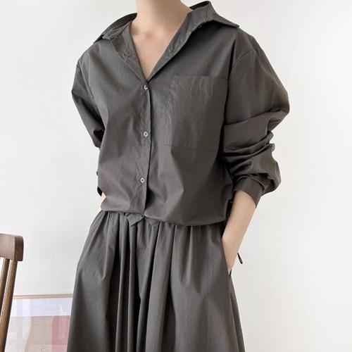 [샵앤][샵앤] 여성 카라 스트링 셔츠 롱스커트 세트 ARA-WSET-4952-차콜
