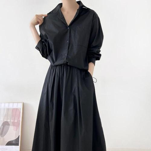 [샵앤][샵앤] 여성 카라 스트링 셔츠 롱스커트 세트 ARA-WSET-4952-블랙