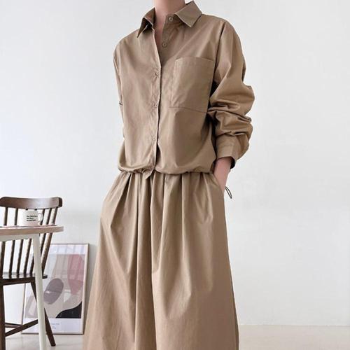 [유야]여성 밑단스트링 카라 셔츠 밴딩 롱스커트 세트 -ESST0108- 빅사이즈 루즈핏 오버핏 가을