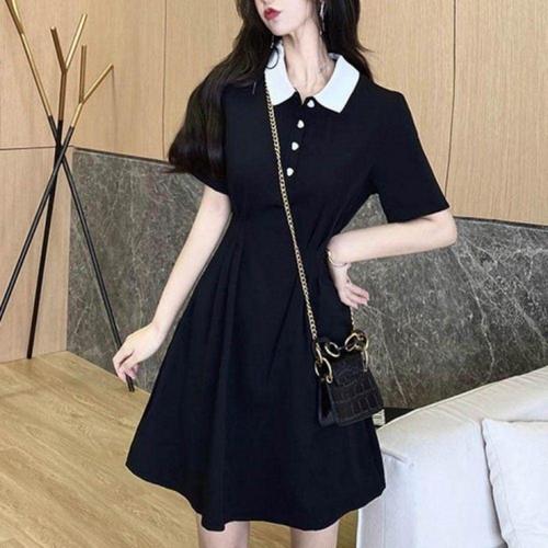 [오너클랜]인기상품 화이트 배색 카라 반팔 쉬폰 블랙 스커트 원피스 여름 셔츠 스타일 [WFLL0BZ_260304]
