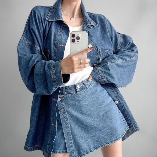 [신상오픈런]여성 오버핏 청남방 세트 포켓 랩 스커트 바지