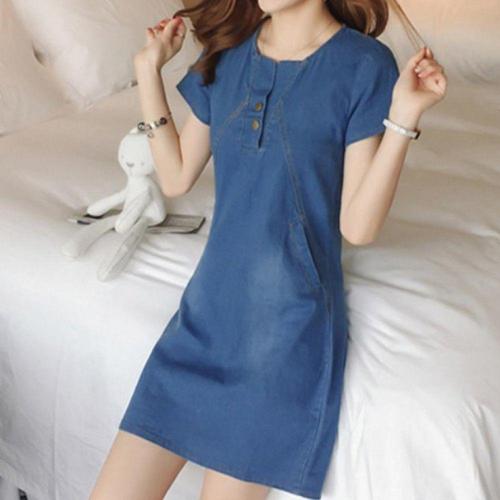 [오너클랜]인기상품 중청 데님 버튼 포켓 미디 반팔 원피스 캐주얼 스커트 [WFLIFGD_260301]