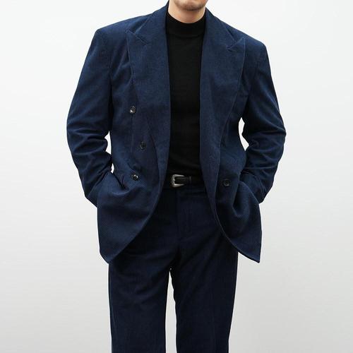 [옷자락]남자 겨울 하객룩 더블버튼 카라넥 코듀로이 수트 자켓