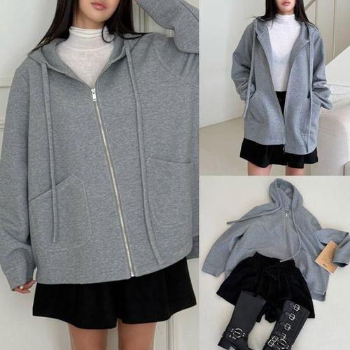 [옷자락]남자 롱슬리브 미니멀리즘 2WAY 집업 후디 민무늬 박시핏 자켓