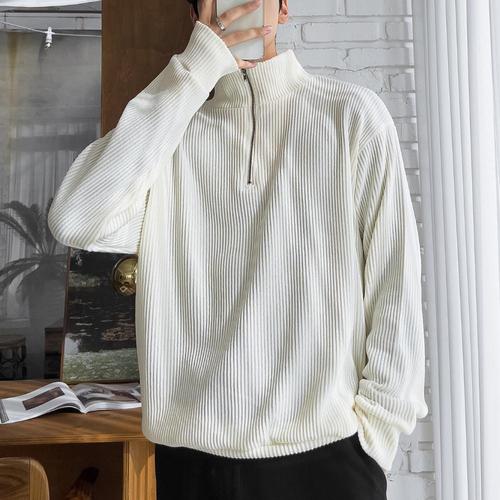 [리빌모아]남자 루즈핏 골지 반집업 기모 긴팔 티셔츠 5C-TSK-Q106-흰색
