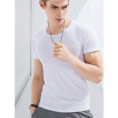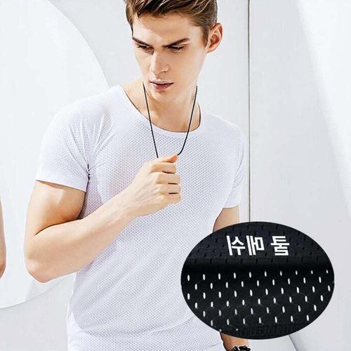 남성용 짧은 소매 메쉬 대나무 얼음 실크 티셔츠 캐주얼 다목적 여름 탄성 슬리밍 탑 남성용
