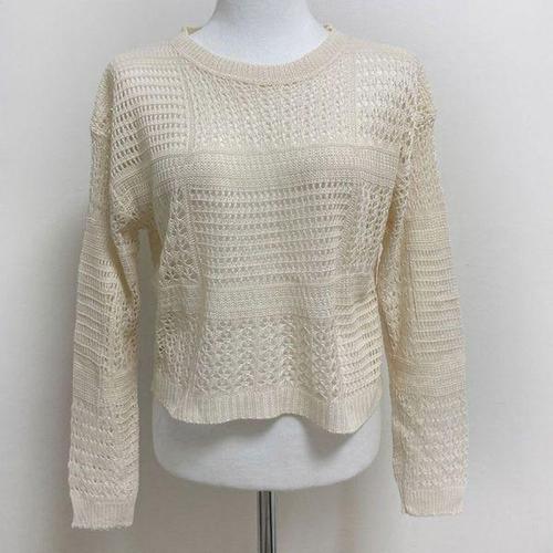 [에이치플러스몰]크롭 그물 긴팔 니트 얇은 여름 티셔츠 루즈핏 바캉스