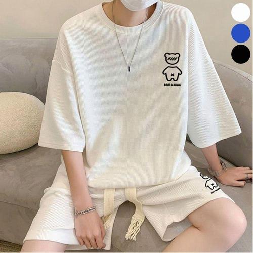 여름 남자 트레이닝 바지세트 반팔티 와이드 5부바지 투피스 수트 빅사이즈